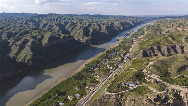 图为黄河石楼段, 生态守护让母亲河尽显“清水绿岸”本色。 刘亮亮 摄