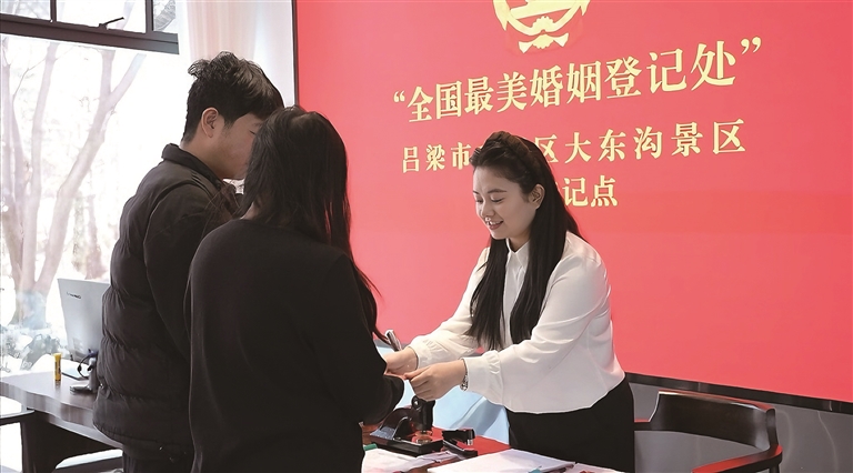 冬天的大东沟景区,银装素裹间藏着别样的浪漫。1月14日,在离石区大东沟景区婚姻登记点开放的第一天,一张张洋溢着幸福的笑脸,成为这个冬日里最动人的风景。