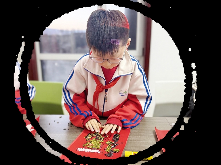 此外,1月24日,王府名苑小区同步开展“五谷绘福字 民俗润童心”手工活动。志愿者向青少年讲解腊八节由来与习俗,引导孩子们用红豆、绿豆、黑米等食材,在红纸上粘贴出寓意“五谷丰登、福气满满”的“福”字。孩子们专注创作,在动手实践中感受民俗魅力,收获满满成就感。
