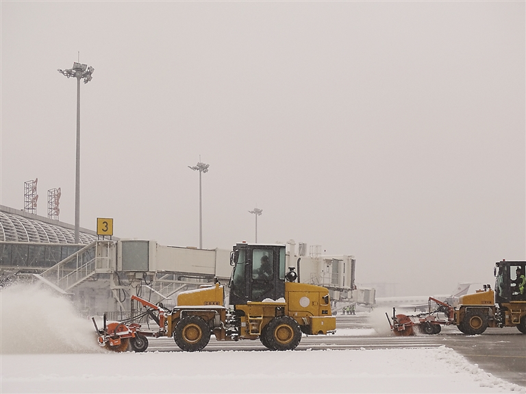 为高效推进除冰雪工作,各部门分工协作、精准发力。出动多台除雪设备,对跑道、滑行道等关键区域集中清扫,快速清除积雪;100余名工作人员组成人工突击队,清理廊桥机位等机械作业盲区,确保跑道良好适航,为航班起降保驾护航。