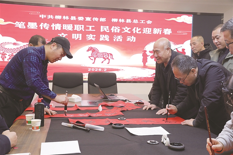 本报讯 新春将至,年味渐浓。为传承中华优秀传统文化,丰富职工精神文化生活,传递组织关怀,近日,柳林县开展“笔墨传情暖职工 民俗文化迎新春”新时代文明实践活动,共迎马年新春。柳林县委常委、宣传部部长王建军参加活动。
