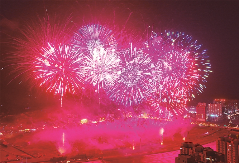本报讯 金马迎春辞旧岁,湫水欢歌庆元宵。3月3日晚,农历正月十五,由山西汇丰兴业集团焉头煤业公司承办的《启航十五五·焰耀兴临州》2026年临县元宵节无人机主题音乐焰火晚会在湫水河畔震撼上演。这场集3000架无人机编队与艺术焰火于一体的视听盛宴,不仅点亮了老区的夜空,更以科技与艺术交融的方式,展现了临县锚定新目标、奋进新征程的豪迈决心。