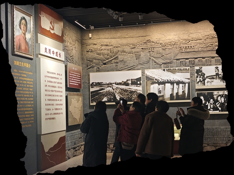 “每学期,文水及周边学校都会组织学生来这里研学,让红色故事代代相传。”今年二十多岁的本地姑娘张静茹,是纪念馆的一名专职讲解员,说起刘胡兰的故事,她的眼中闪烁着崇敬的光芒。在她的引导下,记者走进刘胡兰史迹陈列馆展厅,玻璃展柜中,影印版的《晋绥日报》清晰刊登着刘胡兰英勇就义的消息,字字泣血,句句铿锵;展墙上,一幅幅老照片串联起她短暂却璀璨的一生——纺线、放哨、照顾伤员……平凡的日常里,藏着少年英雄的责任与担当。