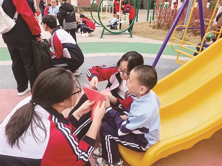 文艺的余韵未散,暖心的陪伴随即展开。五校的师生志愿者们围坐在孩子们身边,开启了一段静谧而美好的互动时光。他们或共读趣味故事,在一字一句的讲述中分享奇妙与美好;或两两对弈,在棋盘的方寸之间引导孩子们学会思考;又或结伴开展趣味游戏,清脆的笑声与加油声此起彼伏,萦绕在校园的每一个角落,让温暖在亲密无间的互动中悄然传递。