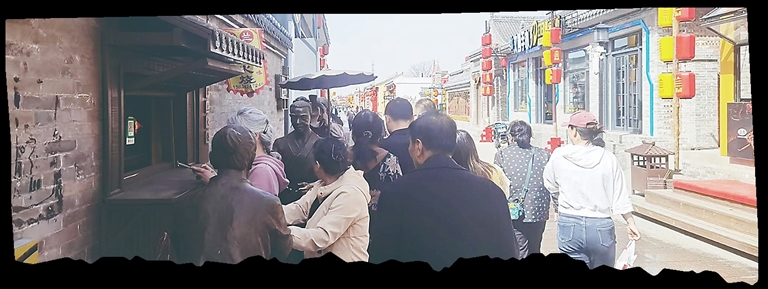 4月5日上午,修缮一新的孝义老城南稍门下人流如织。穿过巍峨的城楼,漫步在复现“一主二副、九街十巷”格局的青石板路上,空气中弥漫着诱人的面香和油香。在老城核心区,各色小吃的摊位前围满了游客,而排队最长的,莫过于孝义火烧的档口。