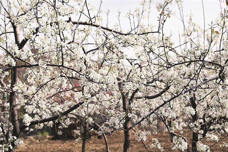 春日暖阳下,柳林县庄上镇梨树凹村绵延数十里的玉露香梨花竞相绽放,如云似雪,美不胜收。眼下正值盛花期,管护人员抢抓农时进行人工授粉,为丰产增收打下基础。梨花盛开的美景,也吸引了众多游客前来踏青赏花、乐享春光。图为管护人员正在为梨树进行授粉作业。 张倩 摄影报道