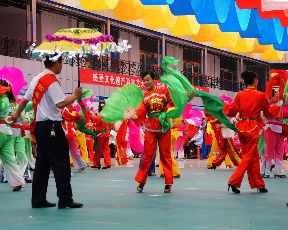 “伞头秧歌”俗称闹秧歌、闹会子、闹红火,是我国北方众多社火秧歌中的一种,流行于我省临县及其周边地区,由于“伞头”(领舞者)在秧歌队中占有重要地位,且手执花伞,故而得名“伞头秧歌”。