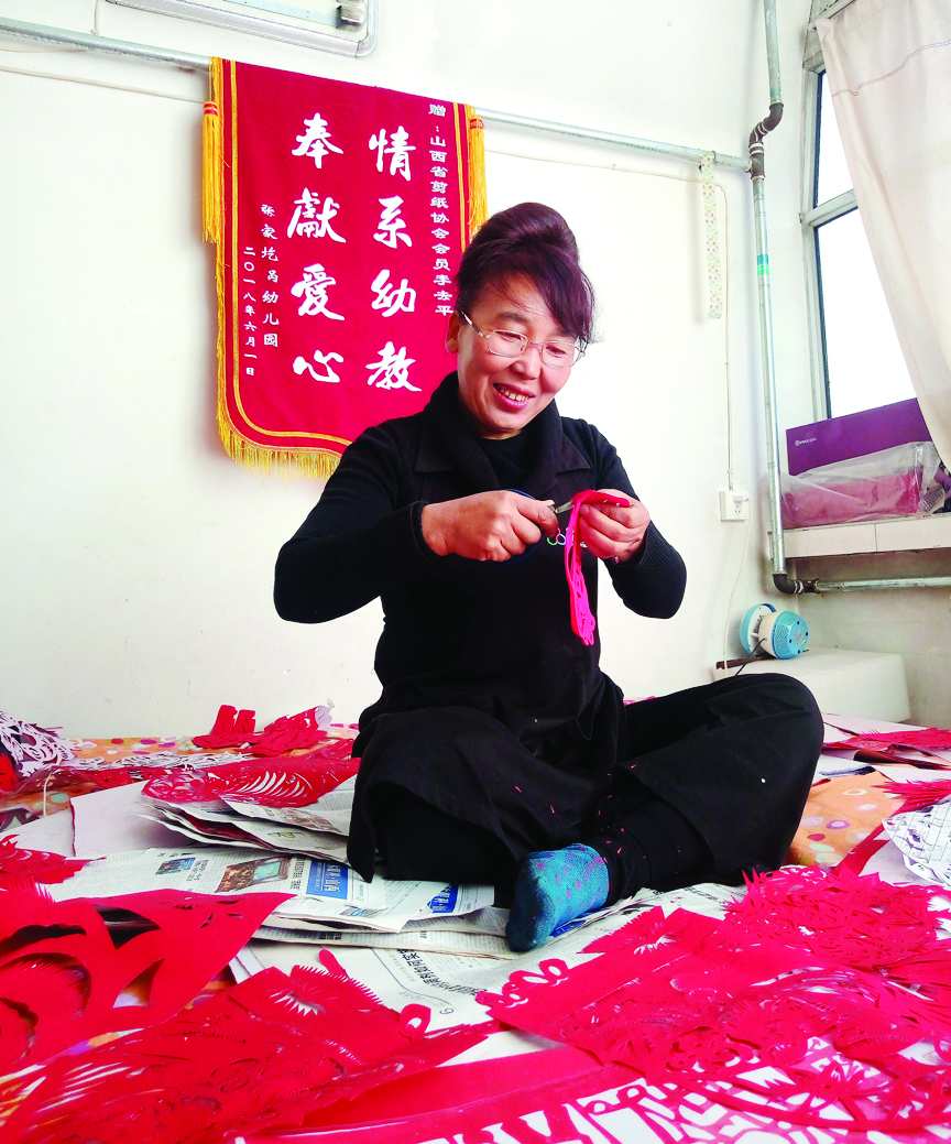 道虽远,不行不至;事虽难,不为不成。 她积极参加县里的公益活动,义务为留守儿童学校上剪纸课,还不时受邀去太原、忻州等地免费讲课授艺。特别是最近几年,她的作品也日益精进层出不穷,先后创作了《十二生肖》《十大元帅系列》《伟人毛泽东系列》《福喜寿系列》《花鸟鱼虫系列》等百余种以红色革命题材为主的作品,先后有多幅作品在省市县非遗作品展中出展,并获多项奖励。