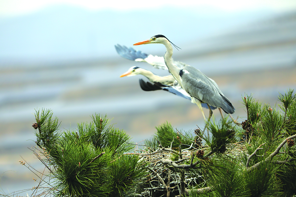 清明节前后,吕梁山脚下的方山县积翠乡刘家庄村迎来了一批“客人”,数百只苍鹭翱翔在碧蓝的天空中,时而翩翩起舞,时而盘旋低回,优美灵动的姿态让人赏心悦目,构成了一幅温馨美丽的风景。